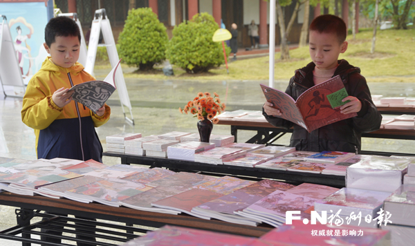 現(xiàn)場展銷的一些精品讀物吸引小讀者。福州日報記者 鄭帥攝