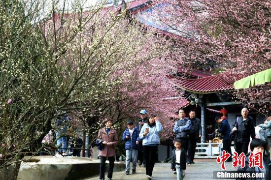 1月23日,位于福州北峰山區(qū)的千年古剎林陽寺內(nèi)梅花相繼綻放,吸引眾多市民前往觀賞。林陽寺是福州五大禪寺之一,建寺至今已有千年歷史。