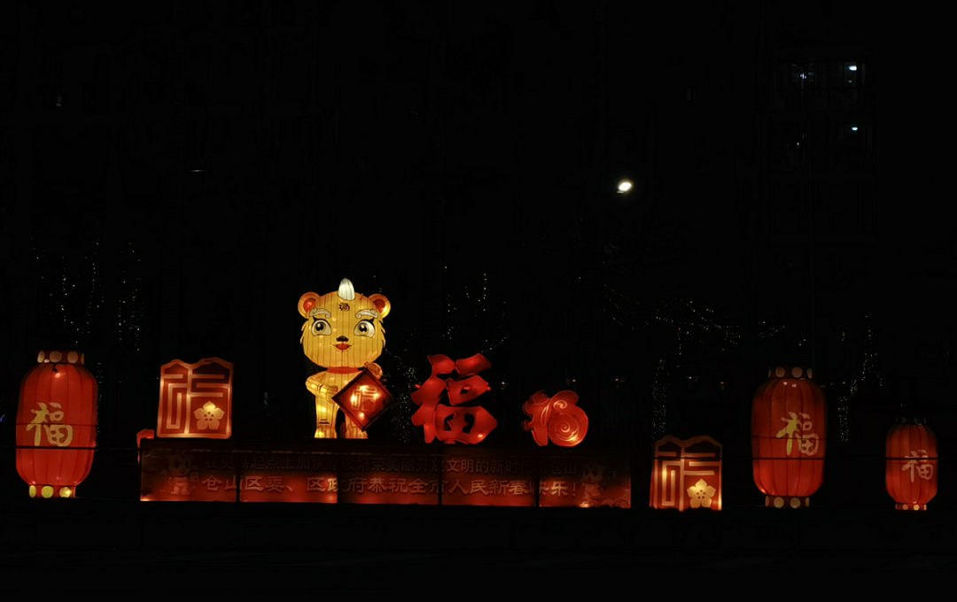 金山大道以各種不同造型的福字及燈籠交錯(cuò)擺放,結(jié)合可愛的生肖虎,烘托熱鬧喜慶的節(jié)日氛圍。