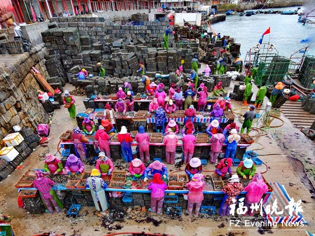 正值鮑魚養(yǎng)殖時節(jié),連江縣苔菉鎮(zhèn)后灣村呈現(xiàn)出一派海上“春耕”的繁忙景象。在后灣村北面的碼頭上,鮑魚養(yǎng)殖大戶吳永壽請來100多名工人,對大小不一的鮑魚進行分苗,篩選裝籠,然后運到海上漁排,掛養(yǎng)“安家”。