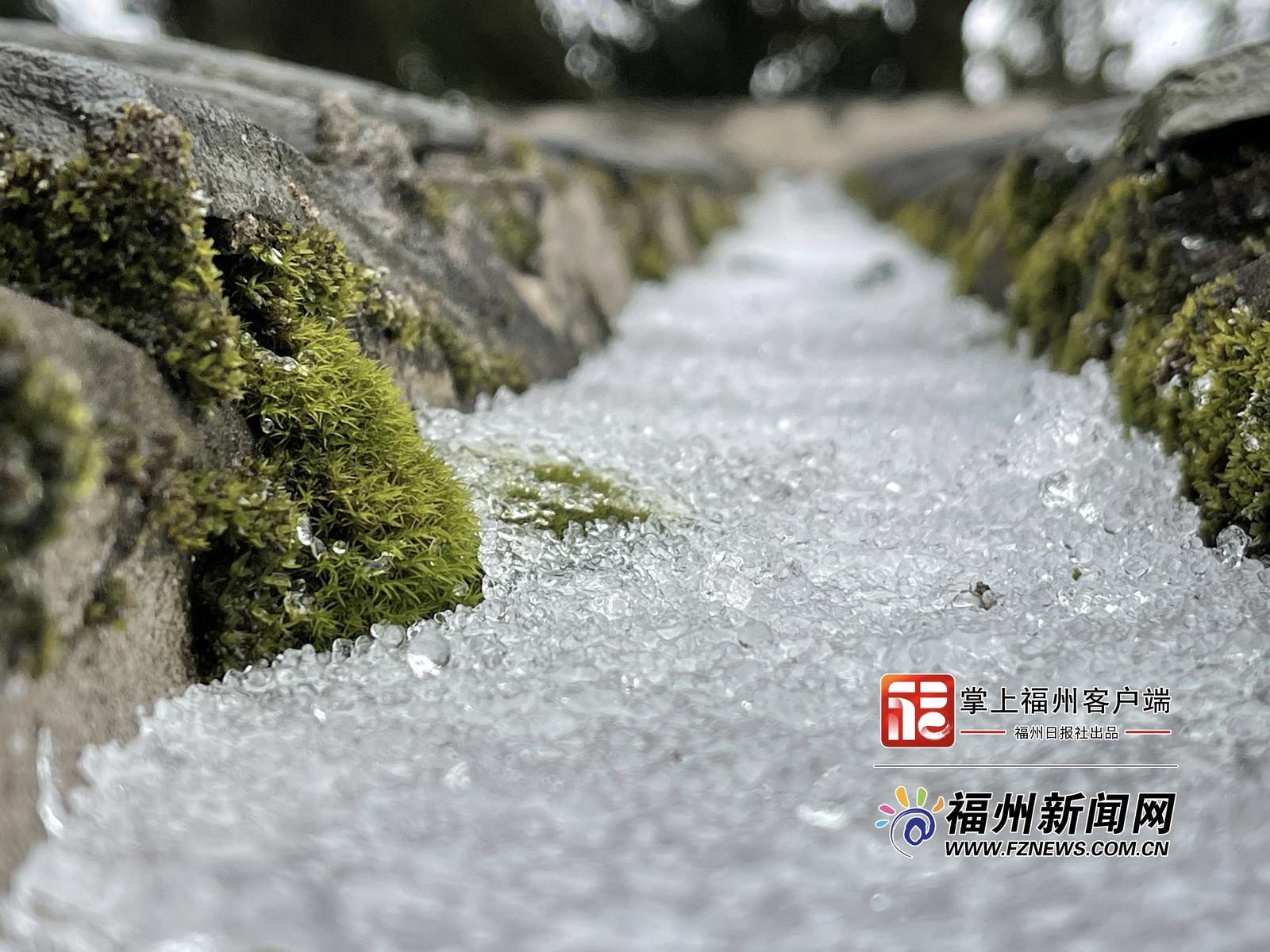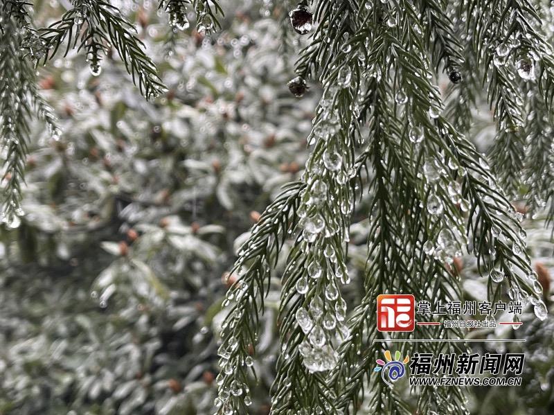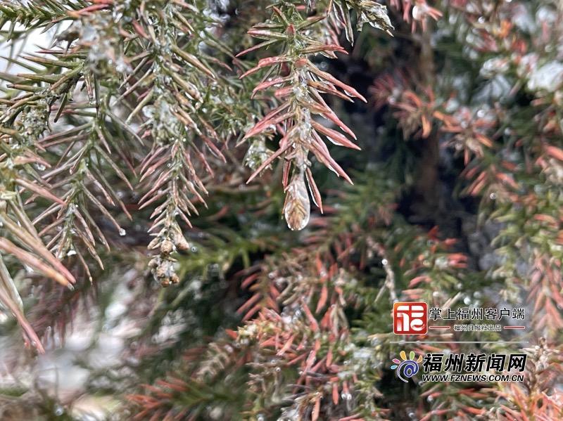 2月20日凌晨,福州市區(qū)迎來(lái)2022年第一波降雪。凌晨的降雪和持續(xù)的凍雨,為鼓嶺上的植物披上一件冰做的外套。松枝、鮮花、青苔……就像被冰封住一樣,晶瑩剔透,美不勝收!
