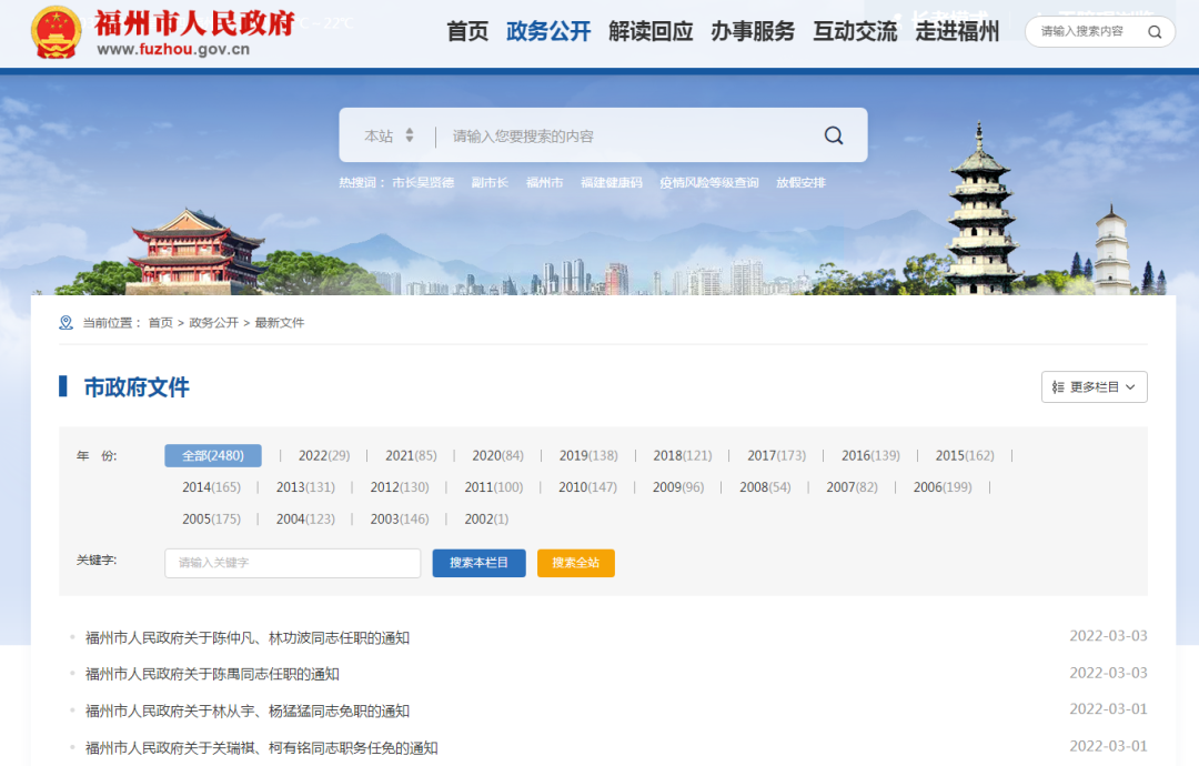 福州市人民政府關(guān)于陳仲凡、林功波同志任職的通知