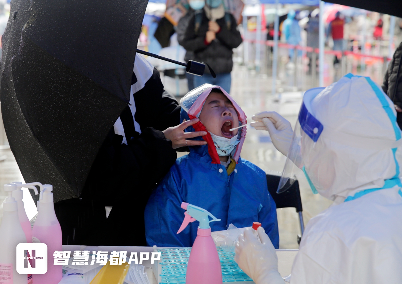 “這邊有位孕婦,請大家讓她先做好嗎?”在兩園安置房臨時采樣點,一群身穿黃馬甲的身影格外引人注目,他們是福建星光救援隊的隊員。隊員黃琴一邊撐著傘,一邊扶著一位大肚子的女士穿過人群,完成采樣后又將她送回了家。當(dāng)天星光救援隊17名隊員在此集結(jié),作為志愿者協(xié)助現(xiàn)場維持秩序,幫助有困難的群眾。