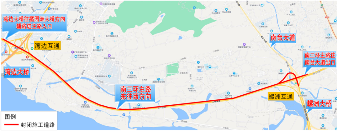 一、2022年4月14日凌晨0時至6時,對南三環(huán)路主路東往西方向(螺洲互通至灣邊互通)實施臨時交通管制,禁止一切車輛通行。