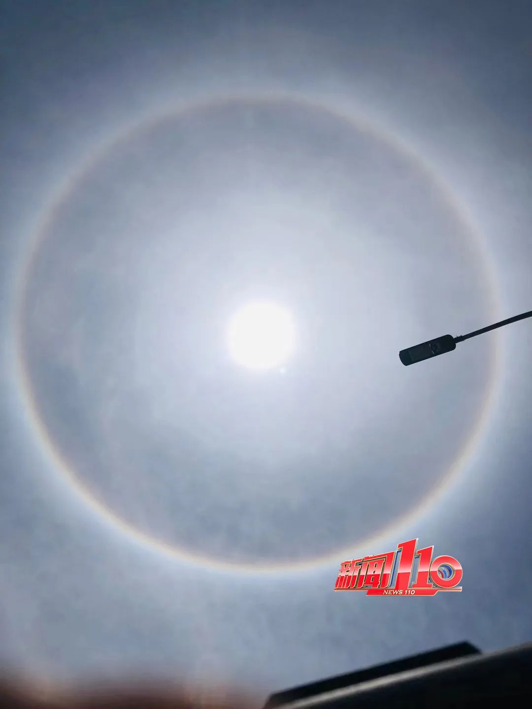 據(jù)了解,日暈是一種罕見的大氣光學(xué)現(xiàn)象,又叫做圓虹,是日光通過卷層云時(shí),受到冰晶的折射或反射而形成的。