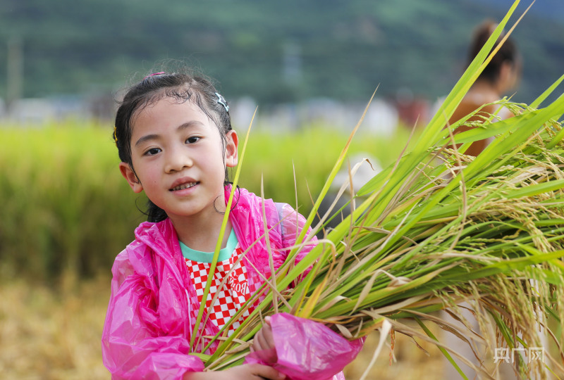 福建省福清市東張鎮(zhèn)三星村的首屆稻香文化節(jié)上,孩子們體驗農(nóng)耕生活(央廣網(wǎng)發(fā) 謝貴明 攝)