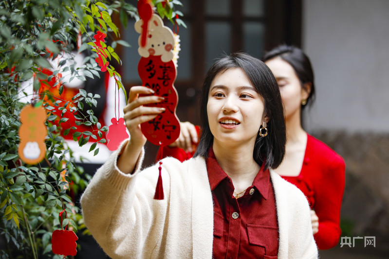 市民將新年祝福牌掛在許愿樹上(央廣網(wǎng)發(fā) 謝貴明 攝)