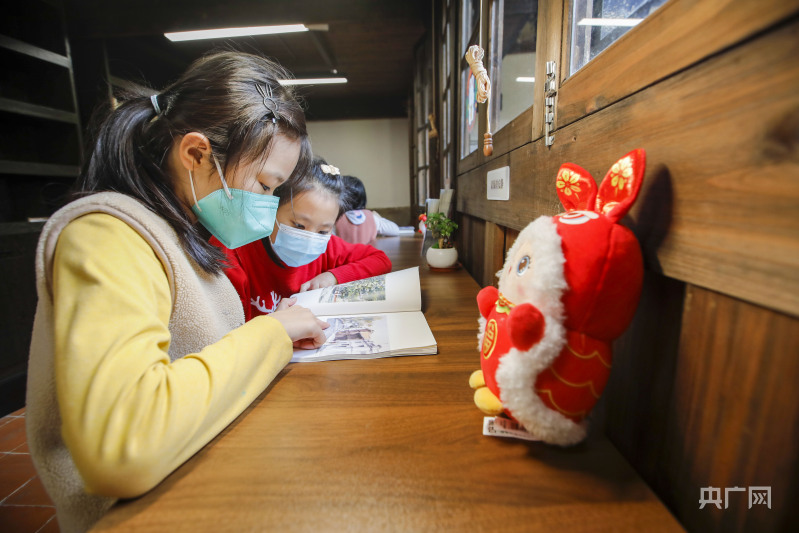 福州美術(shù)館,小朋友閱讀室觀看美術(shù)書籍(央廣網(wǎng)發(fā) 謝貴明 攝)