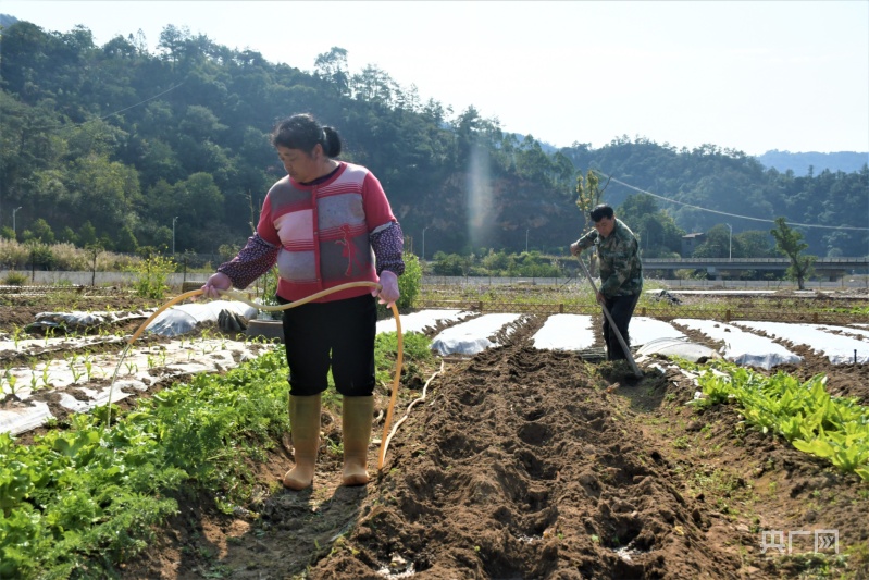 永泰縣塘前鄉(xiāng)莒口村村民在菜地里澆水(央廣網(wǎng)記者 羅曉英 攝)