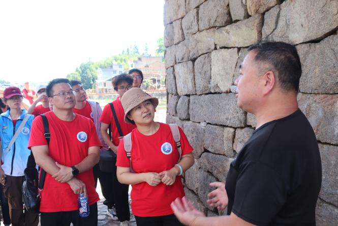 傳承人黃閩輝以其豐富的專業(yè)知識和生動的語言,將這座古老建筑的故事娓娓道來。萬安橋,又稱龍江公濟橋、彩虹橋,始建于北宋元祐五年(1090年),橋長98.2米,寬4.7米,是現(xiàn)存全國最長的木拱廊橋。萬安橋曾于2022年失火,后得以重建。歷史上,萬安橋經(jīng)過了三次焚毀,也經(jīng)過三次重修及多次維修。萬安橋采用中國木拱廊橋營造技術(shù),工藝精湛。其獨特的木拱結(jié)構(gòu)由三節(jié)苗與五節(jié)苗貫穿成一個曲形整體,輔以其他構(gòu)件,以編、撐、頂、拉、別、靠、插、壓等力學(xué)原理為支撐,成功解決了大幅度拱跨受力難題。這種結(jié)構(gòu)在世界橋梁史上具有重要地位,被譽為“我國古代橋梁歷史研究的‘活化石’”,早在2012年就入選了中國世界文化遺產(chǎn)預(yù)備名單。萬安橋不僅是當(dāng)?shù)厝嗣窠煌ㄒ郎系闹匾O(shè)施,也是當(dāng)?shù)厝嗣窬裎幕畹闹匾d體。橋上的楹聯(lián)、碑刻等文化遺存記錄了橋梁的建造歷程和捐資者的善舉,具有深厚的文化內(nèi)涵和歷史意義。團隊成員們聽得津津有味,不時發(fā)出陣陣贊嘆。他們紛紛表示,這次實地學(xué)習(xí)不僅讓他們對廊橋有了更加深入的了解,也讓他們對中華文化遺產(chǎn)有了更加深厚的感情,黃家一家三代曾數(shù)次參與修繕萬安橋,守護著萬安橋,作為青年師生,需要勇?lián)?/span>新時代新的文化使命,加入文化遺產(chǎn)的保護者行列,弘揚民族文化、賡續(xù)精神血脈。