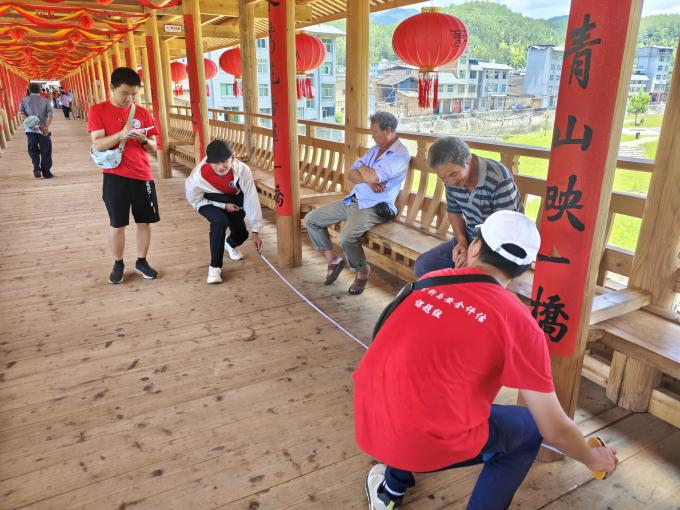 為了更好地擔(dān)負起保護歷史文化遺產(chǎn)的重任,堅定文化自信,為強國建設(shè)、民族復(fù)興偉業(yè)提供強大精神動力。7月8日,福建理工大學(xué)“震”守一方實踐團赴屏南縣長橋鎮(zhèn),探尋小鎮(zhèn)蘊藏的文化遺產(chǎn)萬安橋。長橋鎮(zhèn)黨委副書記、鎮(zhèn)長張?zhí)?,非遺項目“木拱橋傳統(tǒng)營造技藝”傳承人黃閩輝一同前往。