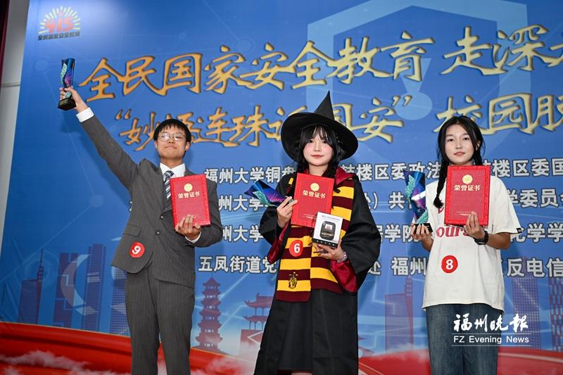 經(jīng)過激烈角逐,比賽決出“鼓樓區(qū)國家安全脫口秀推介官”3名、“鼓樓區(qū)國家安全脫口秀宣傳員”3名、“鼓樓區(qū)國家安全脫口秀積極分子”3名,來自福州大學(xué)數(shù)學(xué)與統(tǒng)計(jì)學(xué)院的大一學(xué)生謝喆宇榮獲大賽一等獎。(記者 劉珺/文 池遠(yuǎn)/攝)