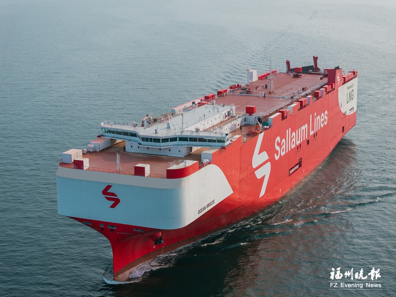 26日,位于連江粗蘆島的福建省馬尾造船股份有限公司建造的7500車LNG雙燃料汽車滾裝船(XSI463I)完成試航任務(wù)。