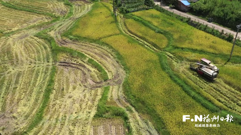 金秋時節(jié),羅源霍口畬族鄉(xiāng)溪前村的稻田里彌漫著豐收的喜悅。稻田內(nèi),沉甸甸的稻穗壓彎了稻稈,大型收割機正開足馬力穿梭,繪就一幅動人的豐收畫卷。