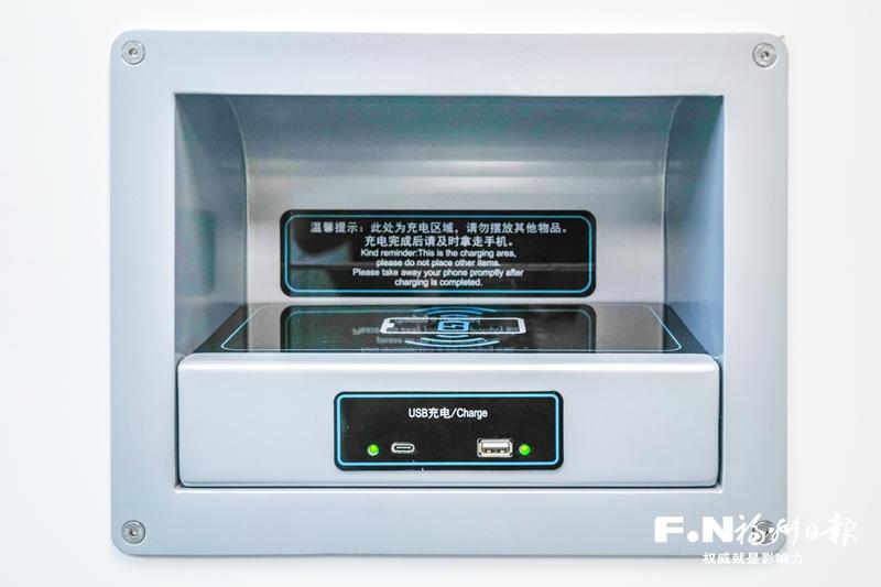 濱海快線車廂內(nèi)設(shè)置的手機(jī)充電處。