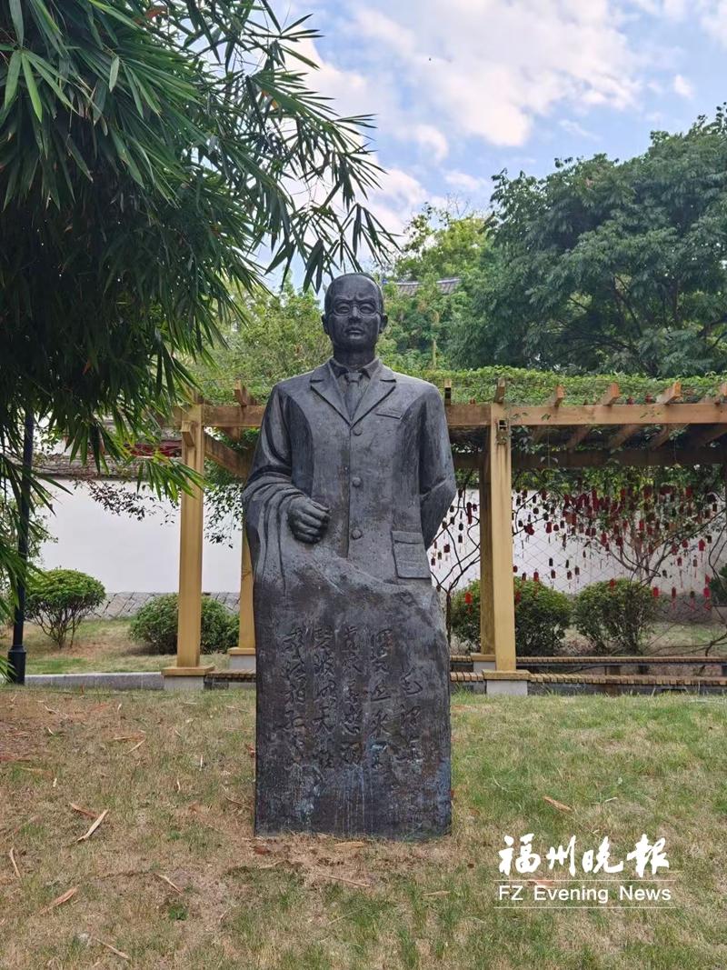 福州格致中學英烈園青草如茵,一尊吳石將軍的半身雕像靜靜佇立在草地上。