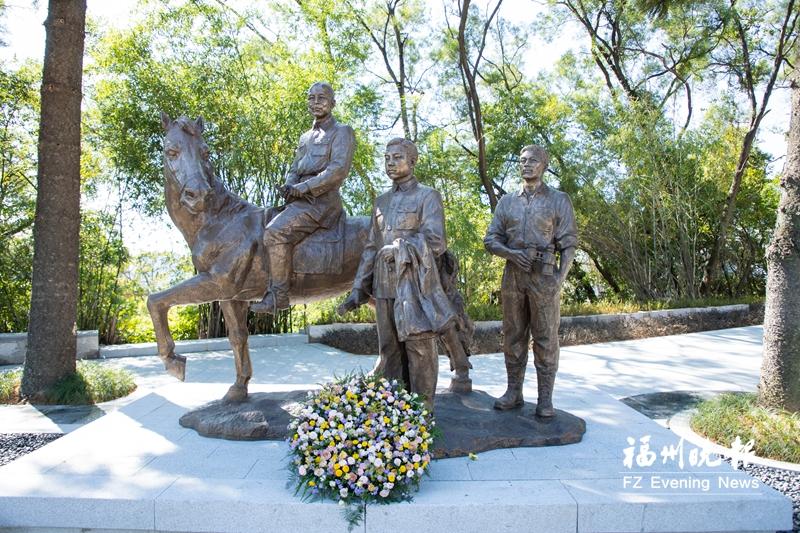 步入三山人文紀念園英雄廣場,記者的目光立刻被兩座銅像吸引,這正是吳石將軍與何遂將軍的銅像。