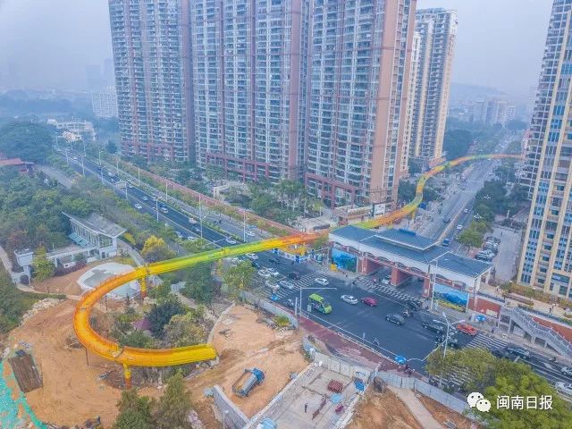 漳州首座“飄帶”人行天橋完成了主橋合龍