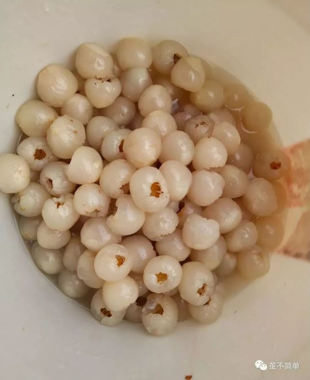 荔枝未全部成熟以前個別果實(shí)就會掉,尤其是刮風(fēng)下雨后,掉下來的荔枝可以加工成荔枝罐頭。所以從六月起,每天早上四五點(diǎn),各家都會趕到自家的荔枝園撿荔枝,晚了怕被別人偷撿了去。