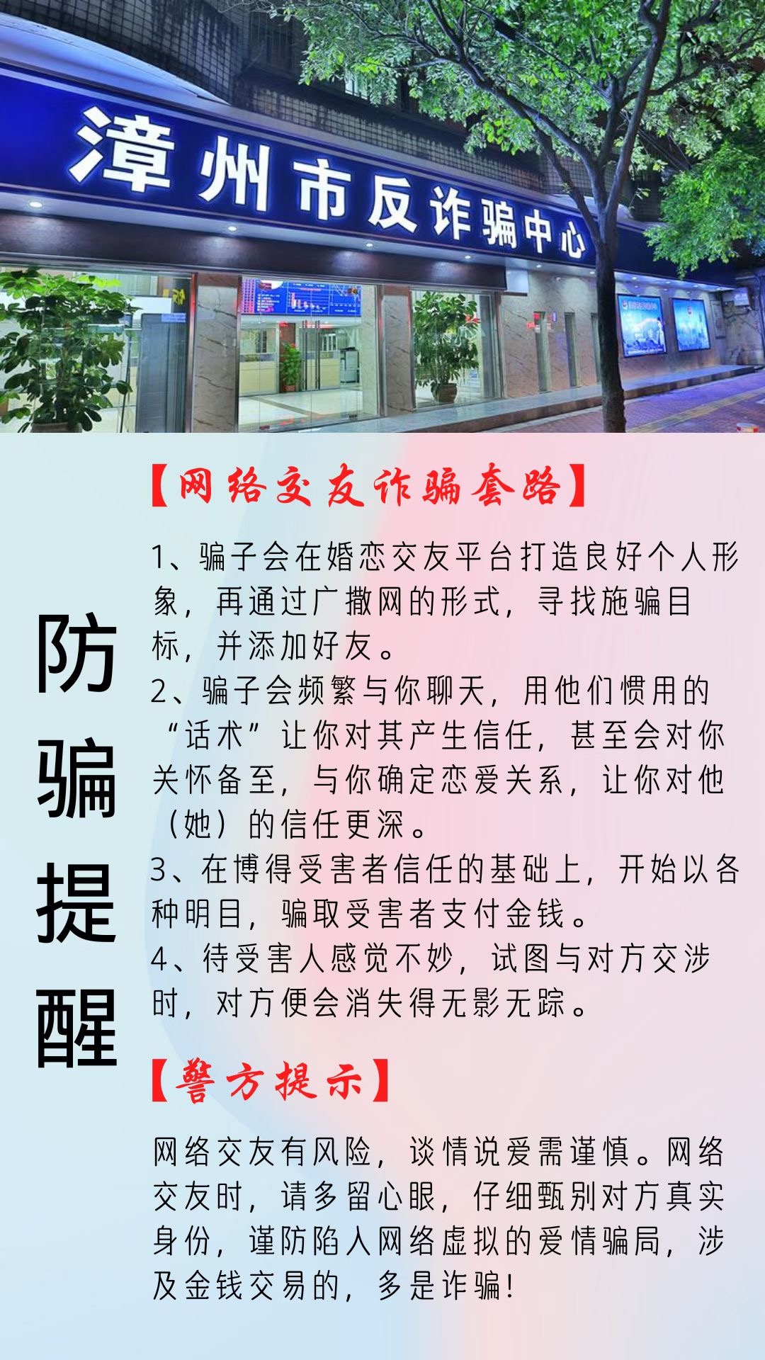 2.網(wǎng)戀需謹慎,驗證真實身份、見面后再投入感情,需要投入資金的時候更要謹慎,此類交友投資、博彩詐騙之外還有普通的交友詐騙,就是借著戀愛之名直接詐騙生活費、醫(yī)藥費、事故費等普通交友詐騙。