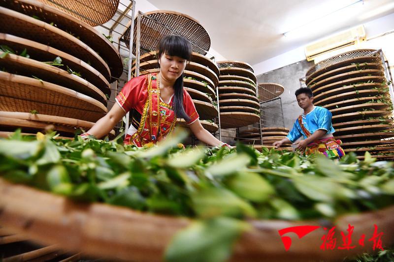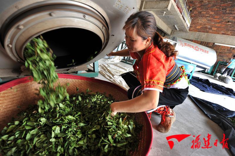現(xiàn)在,茶葉產(chǎn)業(yè)已經(jīng)成為該村的主導(dǎo)產(chǎn)業(yè),全村共有優(yōu)質(zhì)鐵觀音茶園5500畝,茶葉加工戶353家,年可加工茶葉干毛茶860噸,村民人均可支配收入2.17萬元。全村5戶精準(zhǔn)扶貧戶于2017年底全部脫貧,是漳州市第四批社會(huì)主義新農(nóng)村建設(shè)示范村。高山族村民都用上制茶設(shè)備。(福建日?qǐng)?bào)記者 林輝/攝)