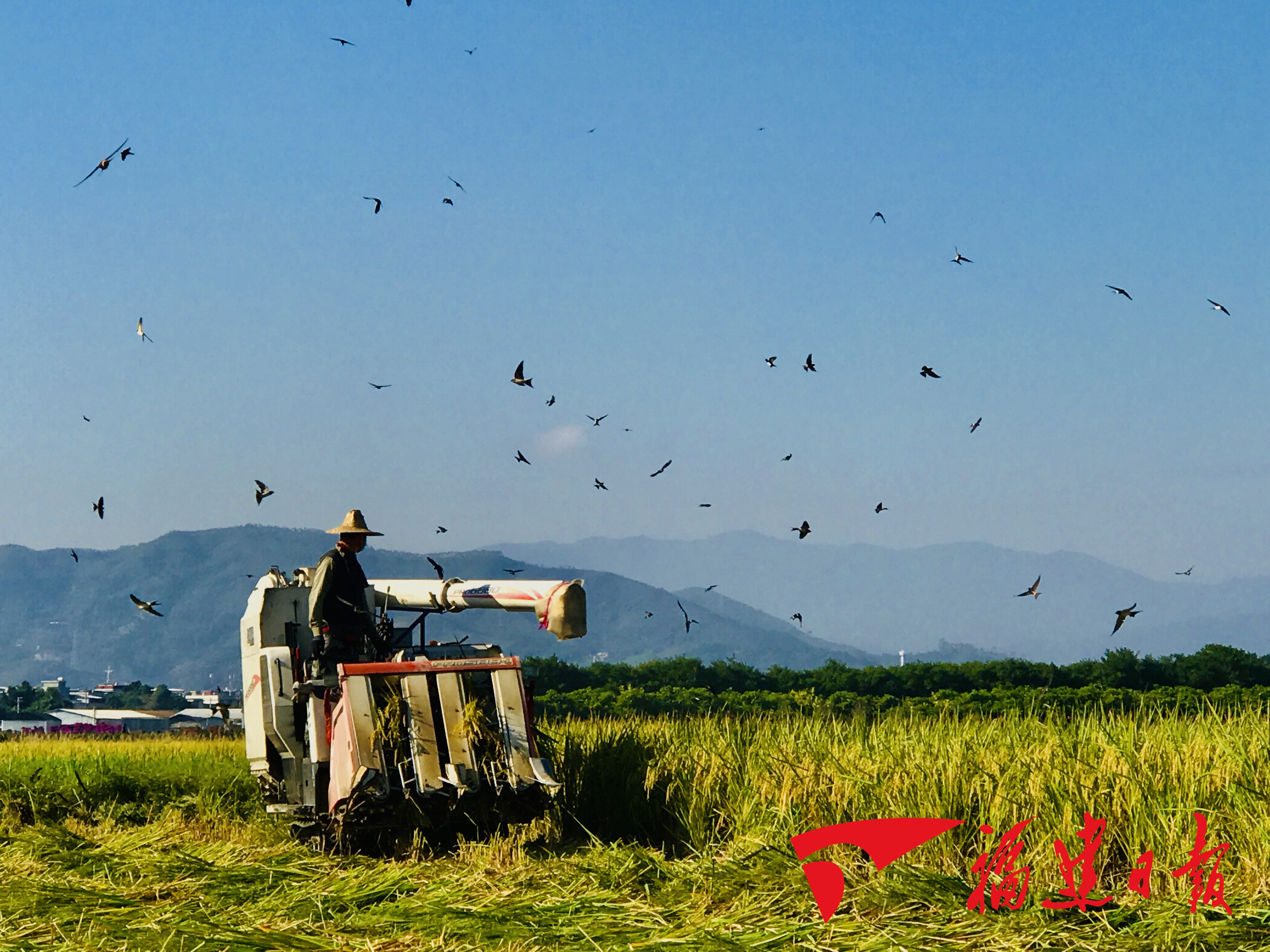 臺海網(wǎng)10月17日訊 據(jù)福建日報·新福建客戶端報道 金秋十月,漳州西環(huán)城路西側(cè)水仙花海插播稻豐收,這茬單季稻當(dāng)?shù)剞r(nóng)民叫“八月白”。放眼望去,農(nóng)民的勞動,機車的收載,綠色的圓山,飛舞的小鳥,構(gòu)成了一副美麗的生態(tài)畫卷。10月16日是世界糧食日,須知盤中餐,粒粒皆辛苦!