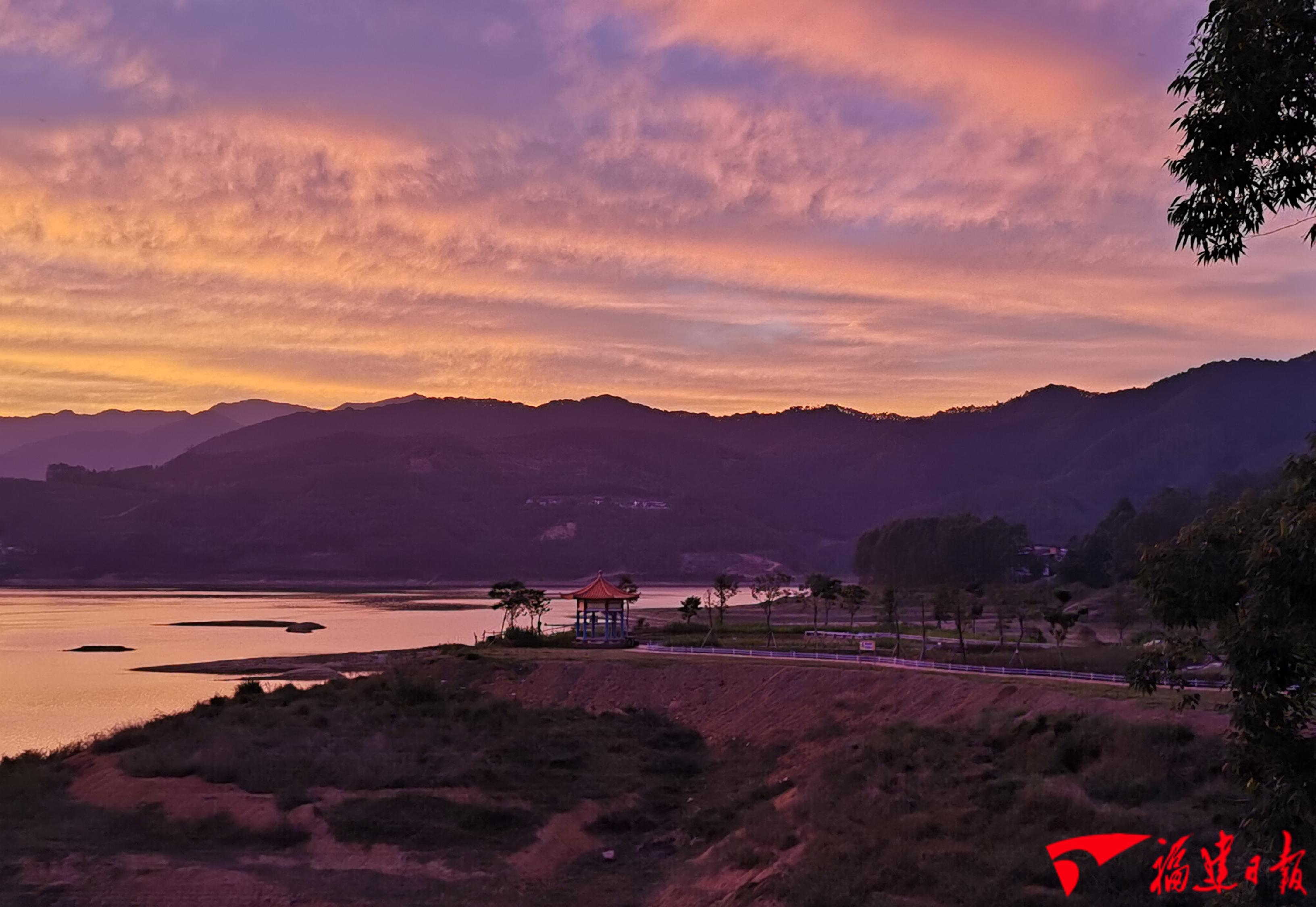 臺海網(wǎng)10月28日訊 據(jù)福建日報·新福建APP報道 10月27日傍晚,在南靖縣奎洋鎮(zhèn)店美村,夕陽西下,滿天晚霞,映紅了整個水庫。橘紅色的落日余暉映照在南一水庫庫面上,水面被染得紅彤彤的一片,水庫棧道上月季花盛開,美麗鄉(xiāng)村風(fēng)景如畫。