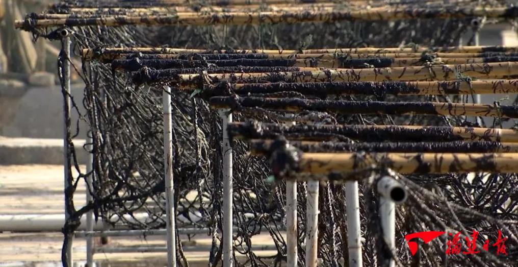 紫菜開始采收,當?shù)氐淖喜思庸S也紛紛開動機器,趕制紫菜干品。在六鰲鎮(zhèn)的這家紫菜加工廠,經過切菜、洗菜、脫菜、烤菜等一道道工序,一片片色澤烏亮的紫菜干品新鮮出爐。