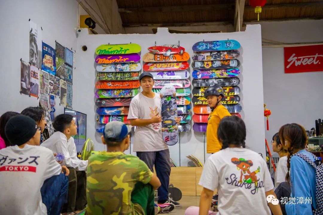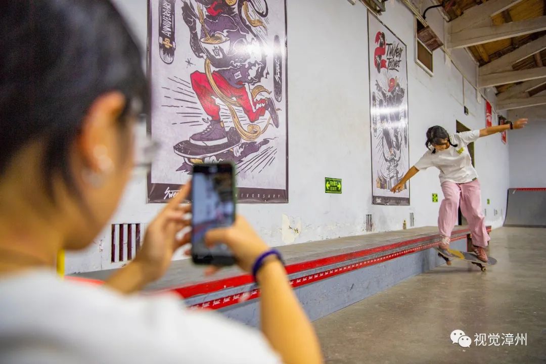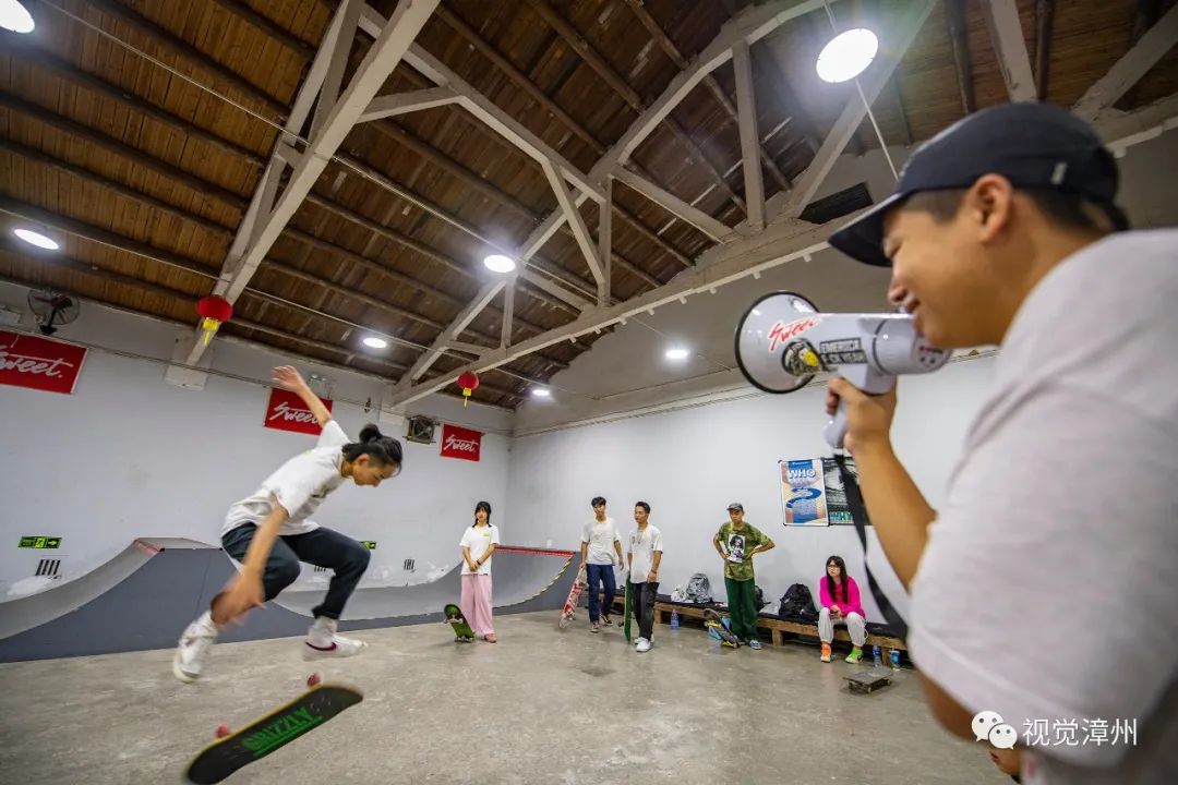 2018年6月,凱倫在市區(qū)開了漳州第一家滑板店。為了讓滑手不局限于平地,不用擔心風(fēng)吹日曬,2019年初,他又萌發(fā)了建滑板場的念頭。“9月初動工,我們花了半個月,自己設(shè)計、自己施工,建成漳州第一家室內(nèi)專業(yè)滑板場。”從此,在高新區(qū)南星上街的一個500多平方米的老倉庫,有了一個真正為滑板運動而聚起來的空間,用于滑板教學(xué)的推廣以及滑板俱樂部集訓(xùn)隊的日常訓(xùn)練,定期舉辦滑板活動與滑板影片首映會,鼓勵和培養(yǎng)年輕滑板愛好者。“已經(jīng)建了兩個微信群,快滿了。”