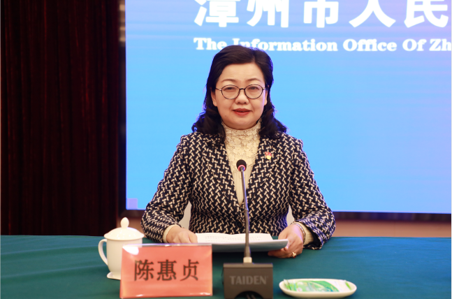 漳州市委宣傳部副部長、漳州市政府新聞辦主任陳惠貞主持發(fā)布會
