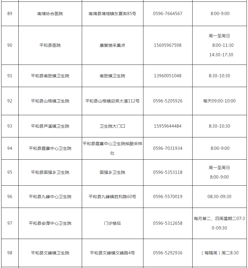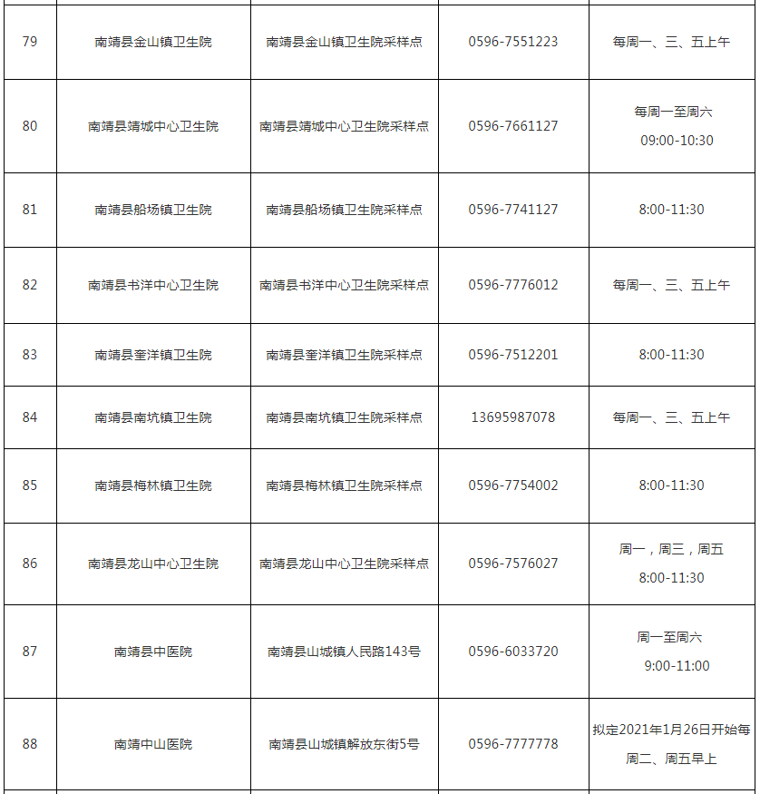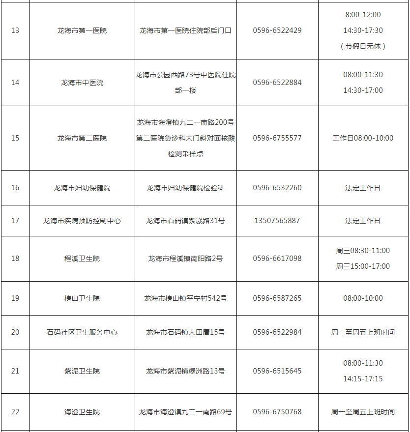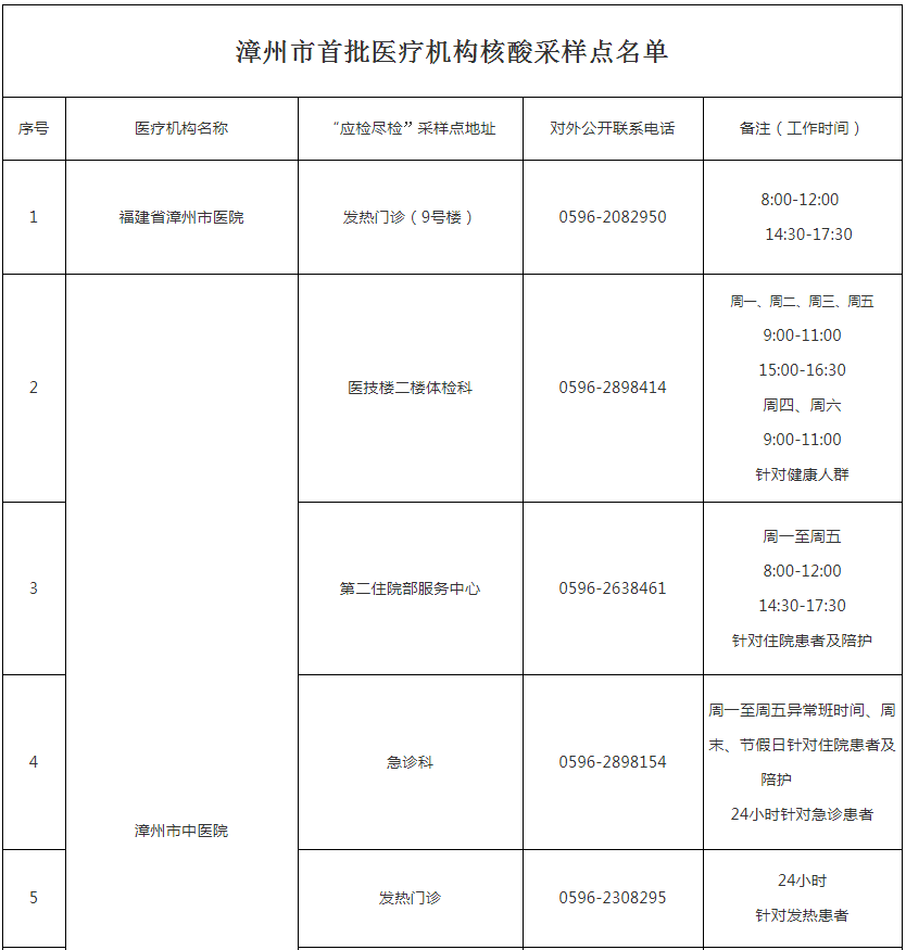 臺海網(wǎng)1月27日訊 據(jù)福建日報·新福建APP報道 為方便返鄉(xiāng)人員核酸檢測和在漳務(wù)工擬準(zhǔn)備回省外人員核酸檢測,27日上午,漳州市衛(wèi)健委官網(wǎng)公布首批醫(yī)療機構(gòu)核酸采樣點。