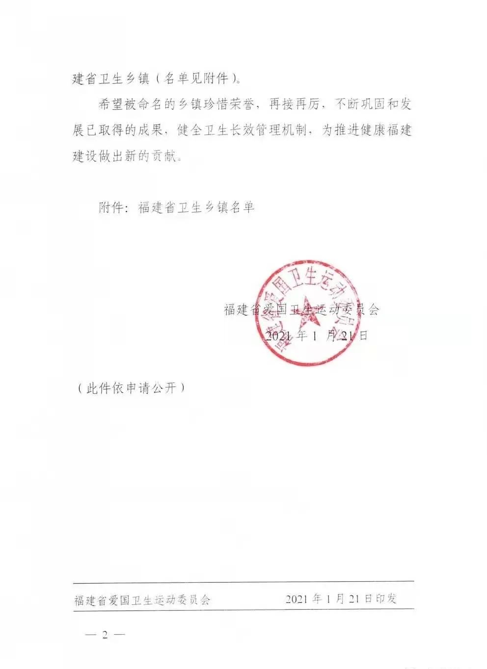 臺海網(wǎng)1月31日訊 據(jù)福建日報·新福建客戶端報道 近日,福建省愛國衛(wèi)生運動委員會下發(fā)《福建省愛衛(wèi)會關(guān)于命名福建省衛(wèi)生鄉(xiāng)鎮(zhèn)的通知》(閩愛衛(wèi)〔2021〕1號),命名一批鄉(xiāng)鎮(zhèn)為“福建省衛(wèi)生鄉(xiāng)鎮(zhèn)”。其中,漳州31個鄉(xiāng)鎮(zhèn)榜上有名,詳細名單如下。