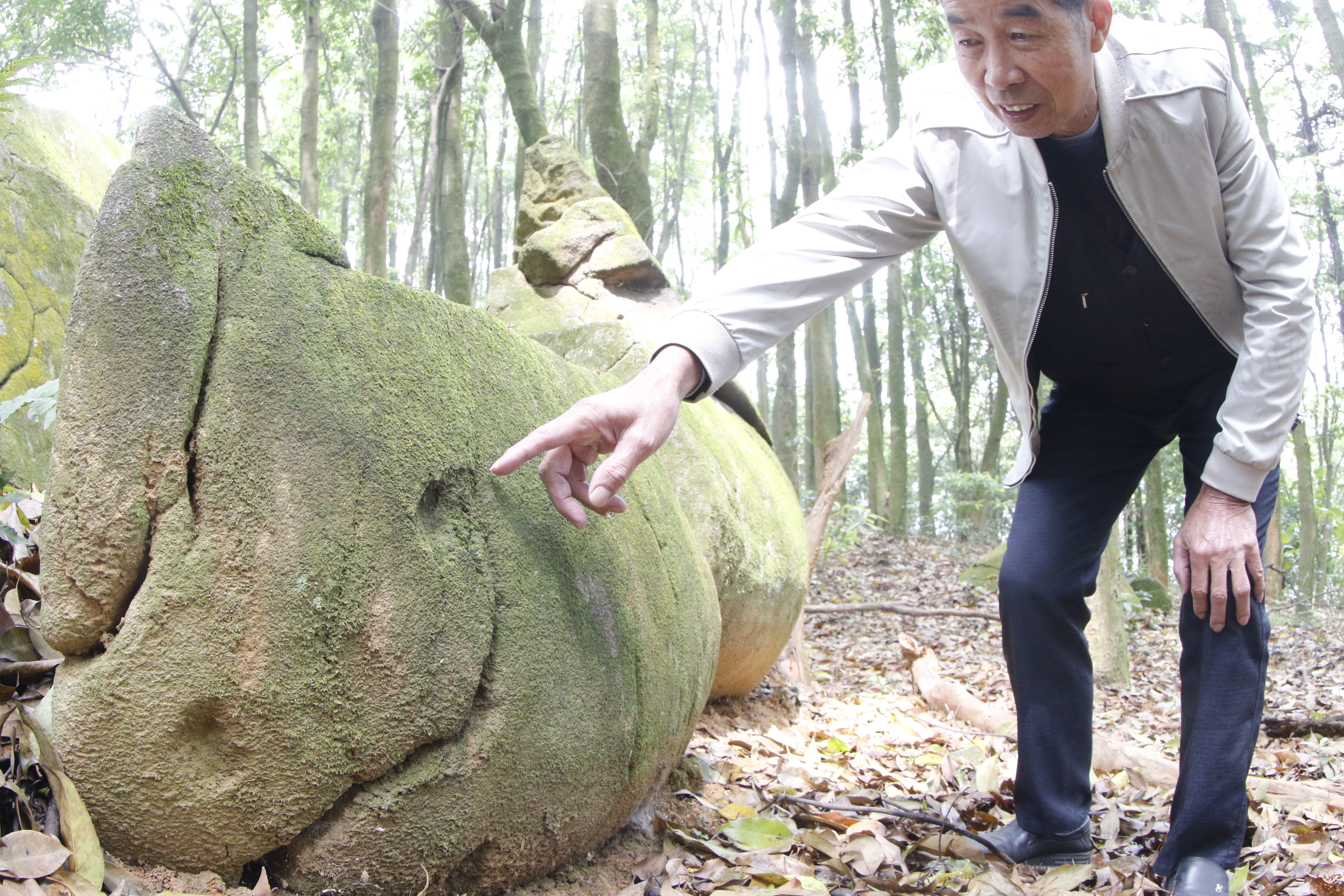 臺海網(wǎng)4月1日訊 據(jù)福建日報·新福建APP報道 近日,記者來到昔日漳州戰(zhàn)役主戰(zhàn)場:十字嶺主戰(zhàn)場,處于南靖、薌城、華安三縣區(qū)交界處的方圓數(shù)十公里的山嶺中。近九十年過去了,如今十字嶺已樹林茂密,綠海翻浪。順著十字嶺的山脊,從低處往上,一條壕溝展現(xiàn)在我們眼前。盡管壕溝覆蓋著雜草和樹葉,部分被泥土沖刷、填埋得像平地,可仍能看出當年戰(zhàn)壕的模樣,特別是山間散落著十幾處土、石壘起來的掩體。石頭上的彈孔還清晰可見。