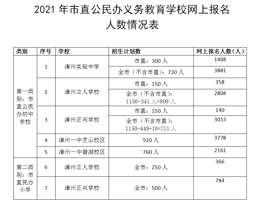 漳州正興學校市直,由于報名人數小于計劃數,按規(guī)定全部招收;