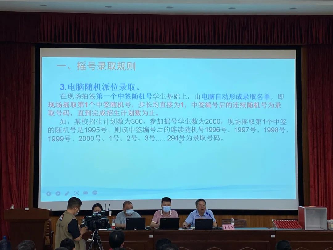 漳州實驗中學市直第一位中簽學生的隨機號已抽出為922;