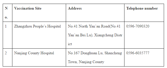 2.Other foreign nationals in Zhangzhou can make appointments online by scanning the QR code below or by calling the designated vaccination sites. List of designated vaccination sites is attached.