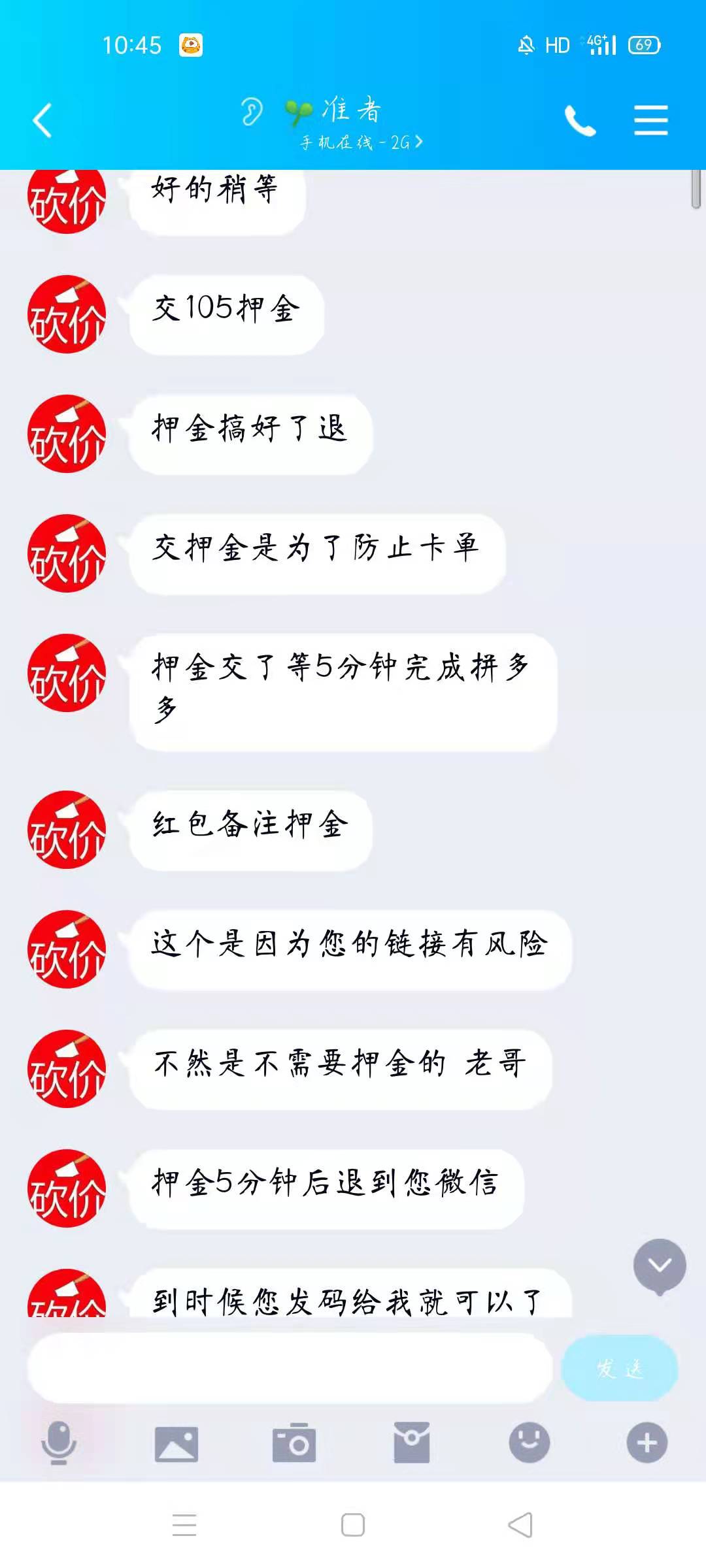 轉(zhuǎn)賬完畢,對(duì)方卻說(shuō)還要再交105元的押金,陳同學(xué)照做了。
