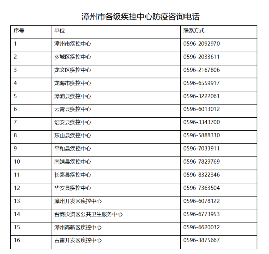 附件1.漳州市各級疾控中心防疫咨詢電話