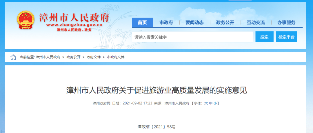漳州市人民政府關(guān)于促進(jìn)旅游業(yè)高質(zhì)量發(fā)展的實(shí)施意見