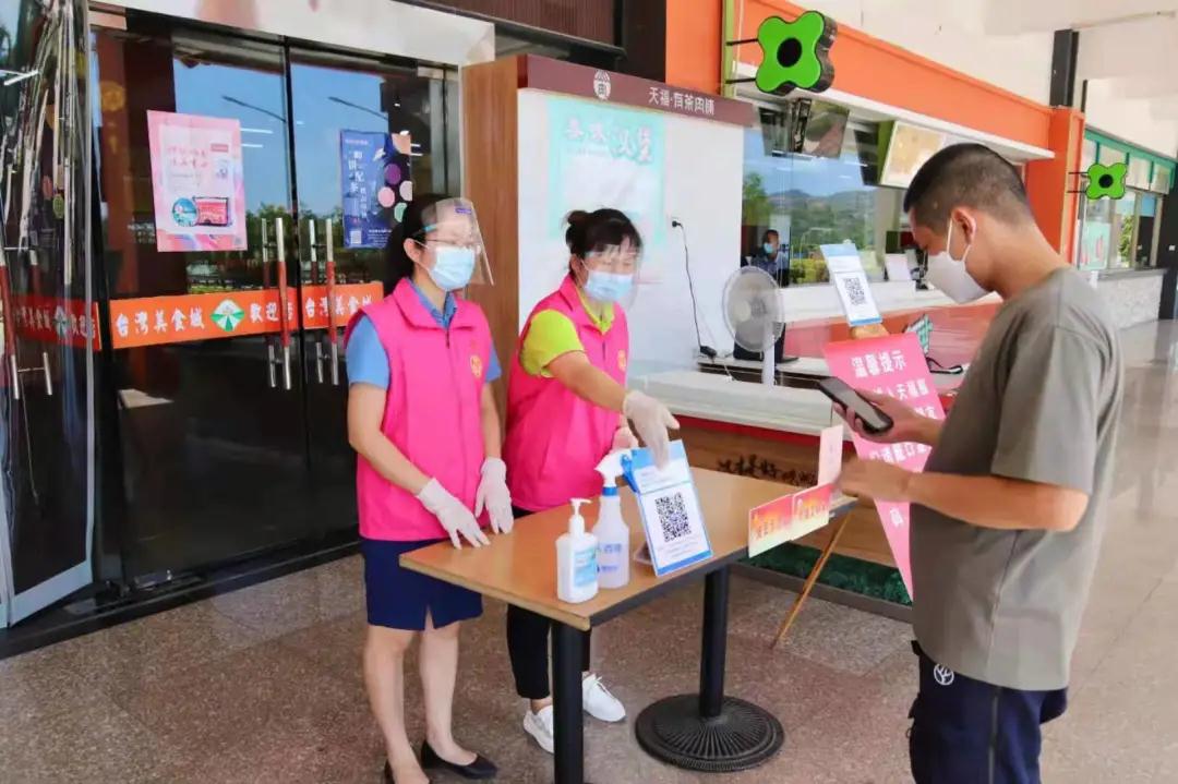 全國巾幗文明崗——天福集團婦工委組織40名巾幗志愿者在高速服務區(qū),每天24小時為過往旅客測體溫,查看健康碼,為沈海高速進入漳浦的“北大門”保駕護航。
