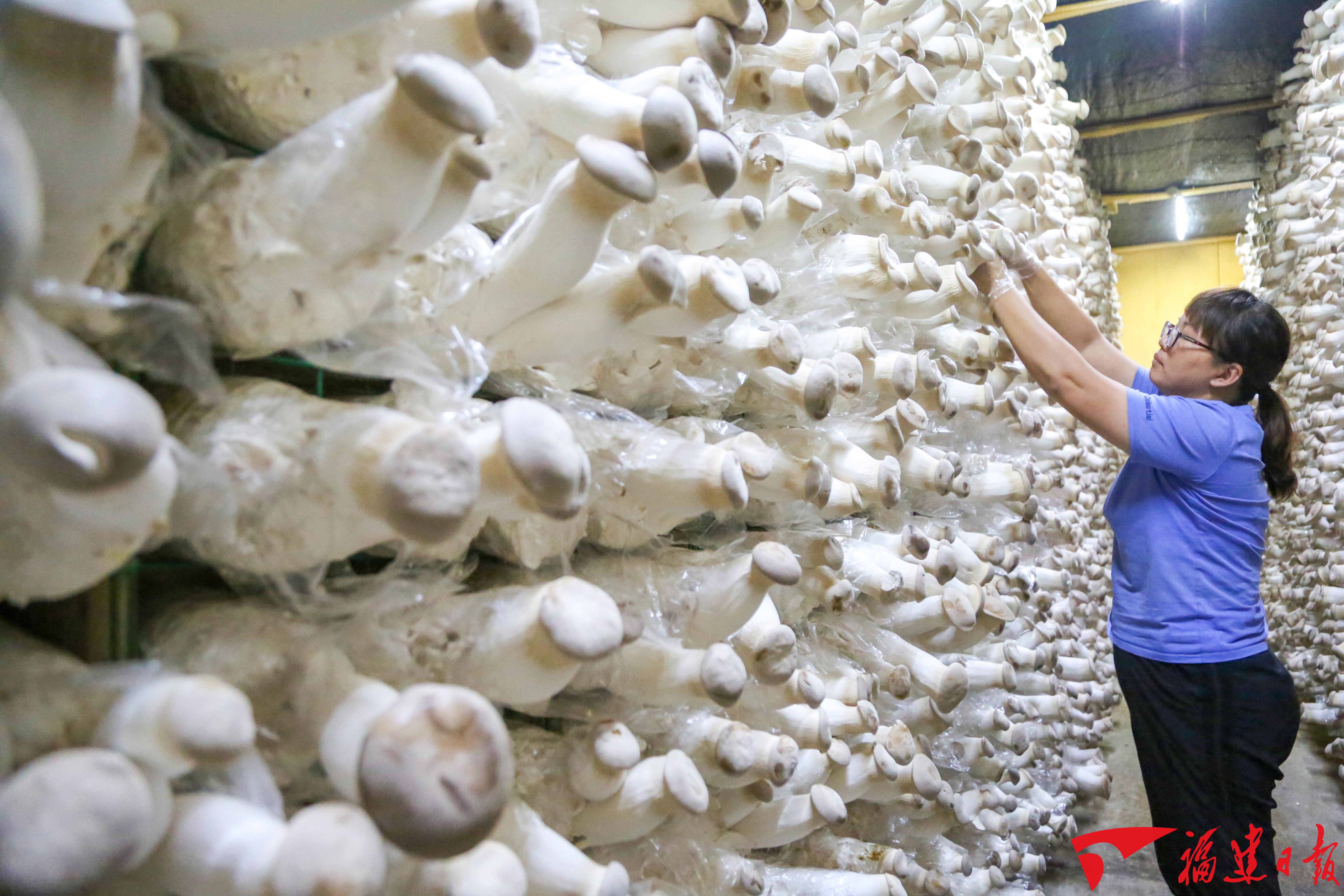 臺(tái)海網(wǎng)10月10日訊 據(jù)福建日?qǐng)?bào)·新福建客戶端報(bào)道 10月8日,在南靖縣豐田鎮(zhèn)奇蕈食品項(xiàng)目恒溫出菇房?jī)?nèi),營(yíng)養(yǎng)袋中的杏鮑菇長(zhǎng)勢(shì)良好,整齊有序地排列在墻面上,工人們正在進(jìn)行成熟杏鮑菇的采摘和分揀。
