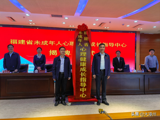 現(xiàn)場,陳添貴、吳彬鏹共同為“福建省未成年人心理健康成長指導(dǎo)中心”揭牌。