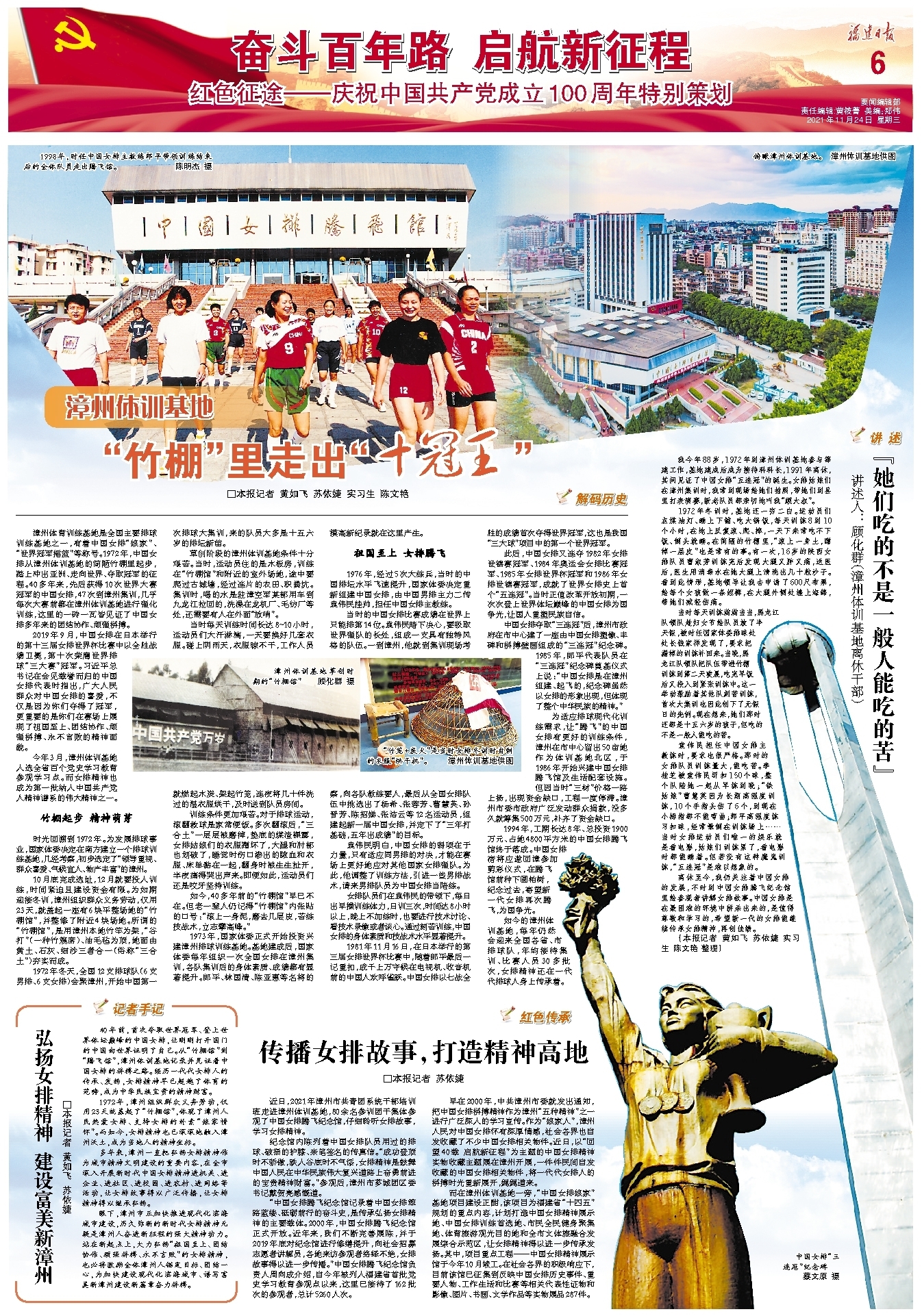 今年3月,漳州體訓(xùn)基地入選全省百個(gè)黨史學(xué)習(xí)教育參觀(guān)學(xué)習(xí)點(diǎn)。而女排精神也成為第一批納入中國(guó)共產(chǎn)黨人精神譜系的偉大精神之一。
