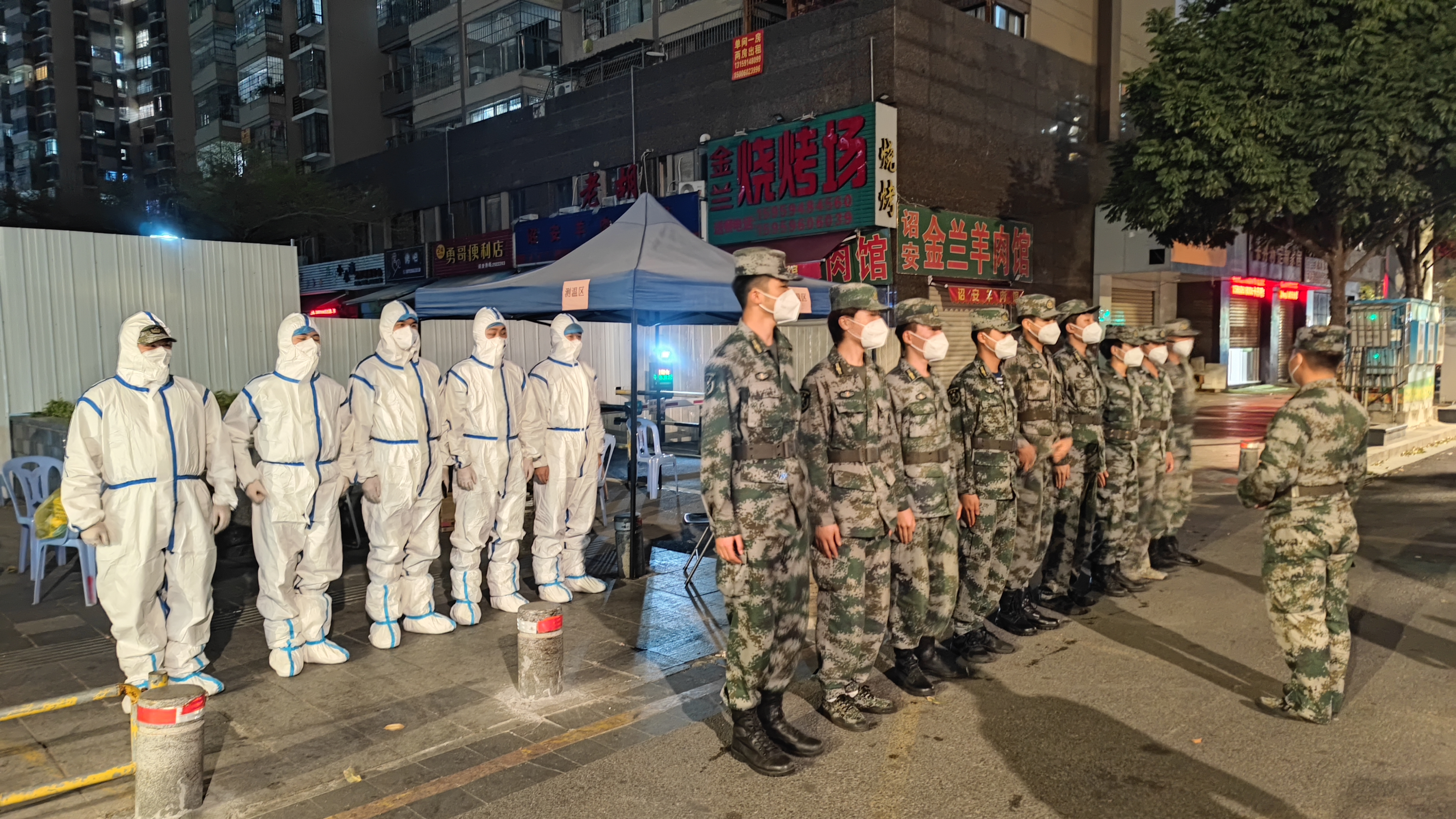 “同志們,剛接到龍文區(qū)人武部的支援命令,龍文區(qū)碧湖街道現調整為封控區(qū),需要我們支持“疫”線崗位?,F在,我們成立突擊隊,到現場后還會有任務區(qū)分,大家有沒有信心?”