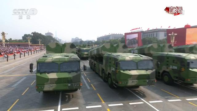 剛剛,火箭軍受閱裝備方陣接受檢閱。受閱裝備包括東風-17常規(guī)導彈、長劍-100巡航導彈,東風-26彈道導彈、巨浪-2潛射彈道導彈、東風-31A改彈道導彈、東風-5B彈道導彈和我國自主研制的新一代陸基機動固體燃料彈道式洲際導彈東風-41。