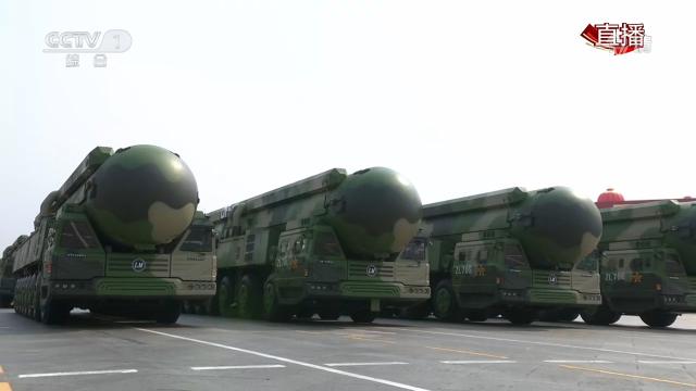 剛剛,火箭軍受閱裝備方陣接受檢閱。受閱裝備包括東風-17常規(guī)導彈、長劍-100巡航導彈,東風-26彈道導彈、巨浪-2潛射彈道導彈、東風-31A改彈道導彈、東風-5B彈道導彈和我國自主研制的新一代陸基機動固體燃料彈道式洲際導彈東風-41。