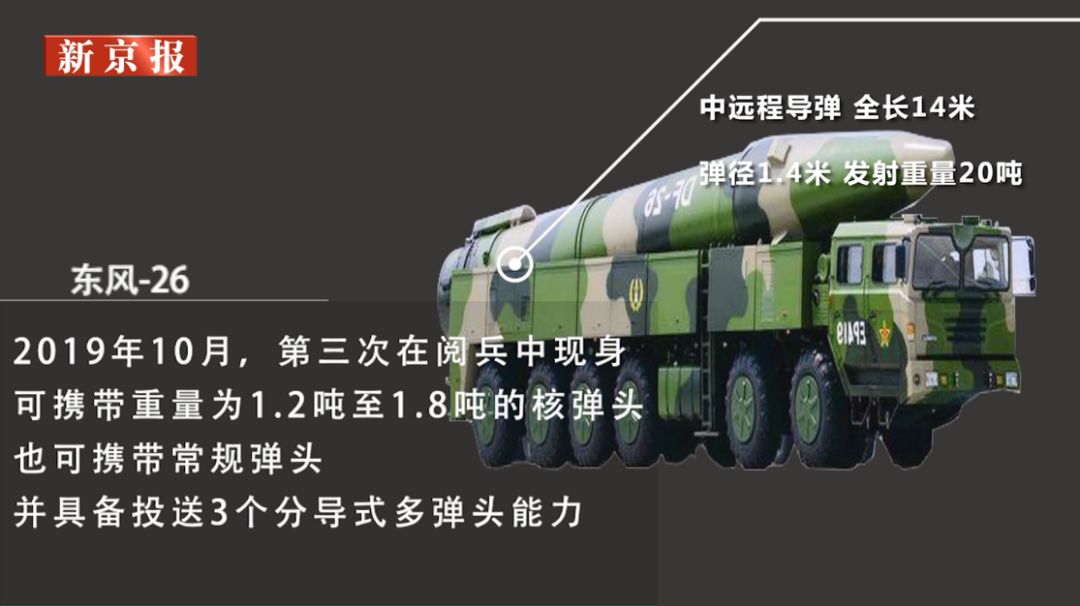2019年10月,第三次在閱兵中現(xiàn)身,可攜帶重量為1.2噸至1.8噸的核彈頭,也可攜帶常規(guī)彈頭,并具備投送3個分導(dǎo)式多彈頭能力。