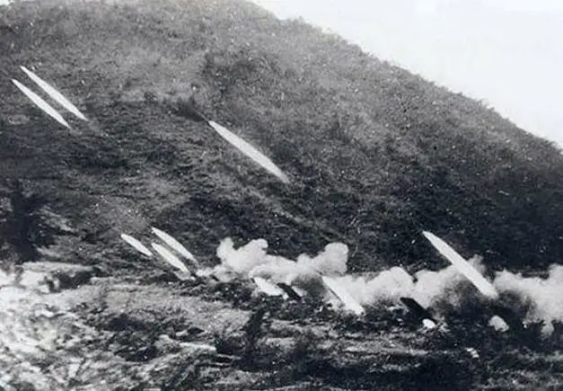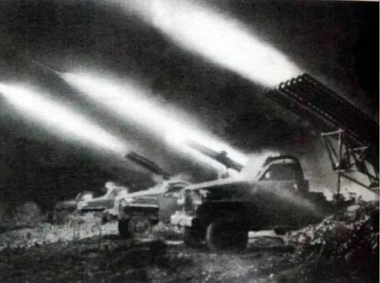 金城戰(zhàn)役中,志愿軍“喀秋莎”火箭炮正在覆蓋敵陣地