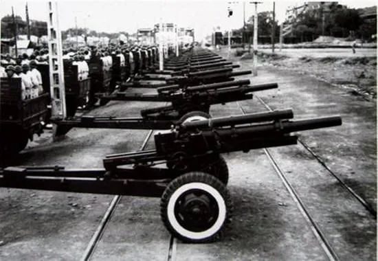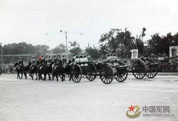 開國大典閱兵式上的日制三八式75毫米野炮,由騾馬牽引
