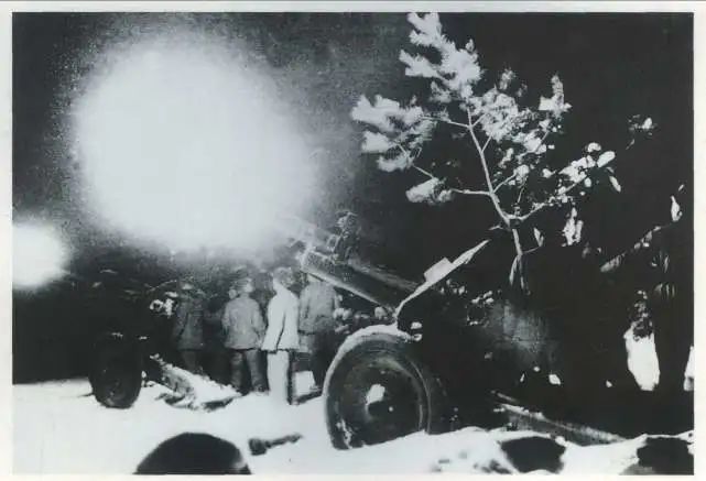 志愿軍炮兵122毫米榴彈炮夜間開火